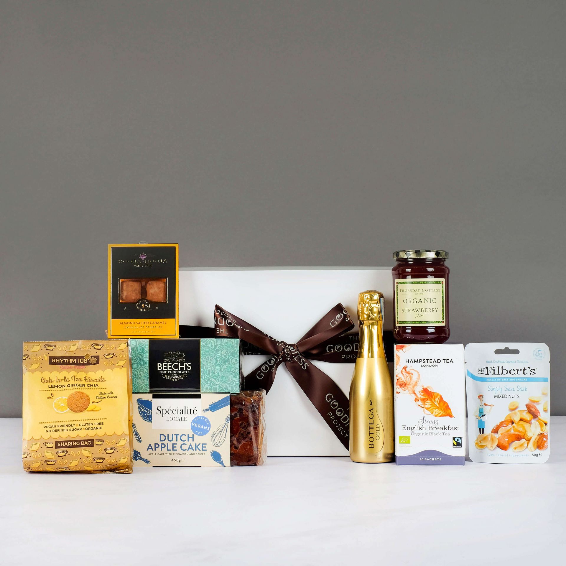 This vegan-friendly hamper is the ideal present for tea enthusiasts. It comes packaged in our upscale gift box and even includes a miniature bottle of Bottega Gold Prosecco for that extra special addition.