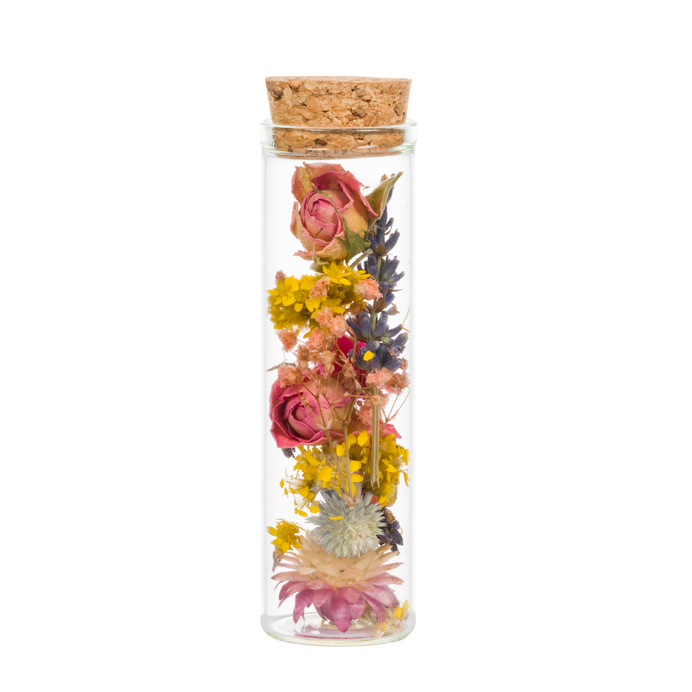 Since dried flowers are entirely natural and biodegradable, they are excellent for the environment. Freshly cut flowers need to be refrigerated and kept wet after being picked, however these dried flowers are simply hand-cut and arranged in a beautifully simplistic glass bottle.