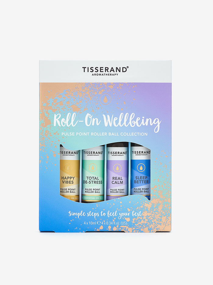 TheTisserand Aromatherapy The Little Box Of Wellbeing Gift Set harnesses the power of 100% natural pure essential oils to help inspire happiness, alleviate stress, restore inner quiet, and aid in sleep.