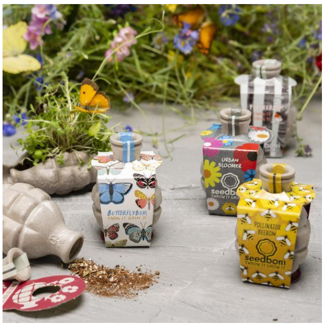 They’re simple to deploy too, all Mum has to do is pull the pin and pop the Seedbom into the area that needs brightening. Areas just need to have plenty of natural light, with bare soil and a good level of dampness. Once the Seedbom is planted, it will then biodegrade into the environment, leaving only flowers behind and fertilising the soil as it does so.