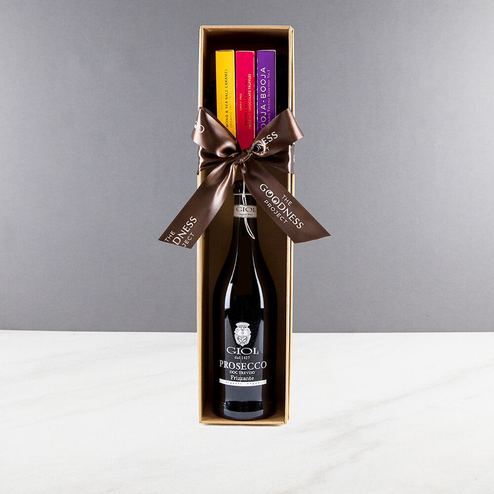Corporate gifting doesn't get any more luxury than this, your clients will fall in love with the mouthwatering assortment of Booja Booja Truffles after they crack open this magnificent bottle of Italian Semi-sparkling Prosecco. With the options of Raspberry, Almond Salted Caramel, and Fine de Champagne truffles, the luxury Italian Prosecco and Booja Booja Truffles Gift Set is a classic corporate gift they definitely won't forget!
