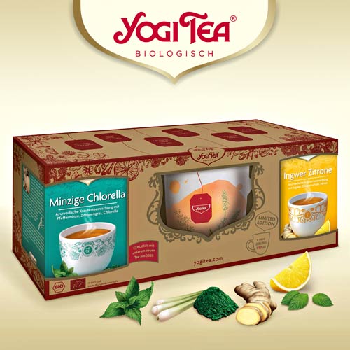 The Yogi Tea Gift Set "Feel Good Moments" contains a zingy ginger lemon tea, a soothing minty Chorella as well as a gorgeous ceramic cup, which can be used whether you like your drinks hot or a refreshing cold tea!